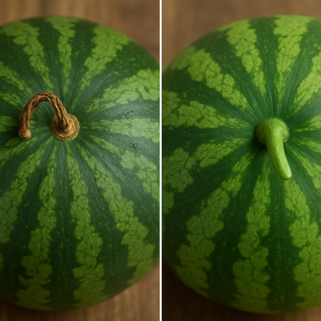 - ⚠️ 크고 튀어나온 배꼽 👉 오래 자라 물 많고 밍밍할 확률 💧